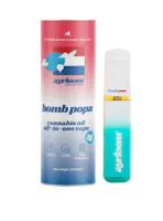 a bold burst of cherry, lime + blue razz, bomb popz is bright, juicy + smooth. your summer spark built for the perfect slow burn. this is how summer should taste. ingredients: cannabis extract, botanically derived terpenes instructions: inhale for 3-5 seconds. wait at least 30 seconds between puffs. store vertically and at room temperature away from light.