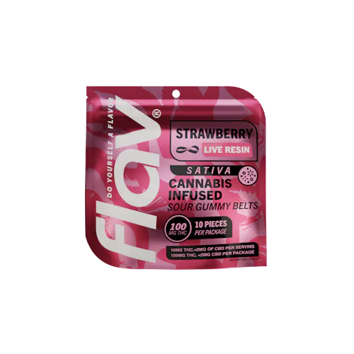 Flav Sour Strawberry Live Resin Belts Gummies 10mg 10pk