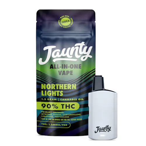 Northern Lights is an iconic indica that wraps you in full-body calm and dreamy euphoria. Sweet, spicy, and smooth on the exhale, it’s the perfect go-to when you’re ready to unwind and drift into pure relaxation. Jaunty Palms combine cannabis-derived terpenes with distilled cannabis oil, delivering true-to-strain flavors and effects-driven profiles in a discreet, portable device — ideal for on-the-go use.