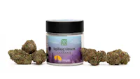 Bright, punchy fruit with a soft-focus haze, thanks to a modest hit of myrcene on the back end. Moderate THC; mellow, dreamy, easygoing.