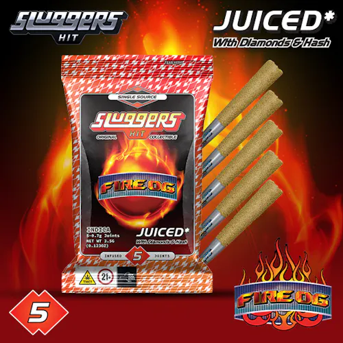 Sluggers Fire OG Diamonds & Hash Infused Preroll .7g 5pk