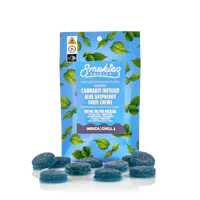 "Enhanced with real cannabis terpenes! Smokiez Blue Raspberry Indica Fruit Chews are NOT YOUR AVERAGE FRUIT CHEWS™ ;) These fruit chews taste like fresh raspberries, with a juicy and slightly tangy taste that is reminiscent of ripe berries. These delicious fruit chews are a tasty and discreet way for you to medicate! They are also Vegan, Gluten Free, Dairy-Free, and contain NO High Fructose Corn Syrup. Each of our mouth watering fruit chews contain 10 mg of THC, and made with our high clarity cannabis distillate for great taste. There are 10 pieces per package with 100 mg active THC per package."